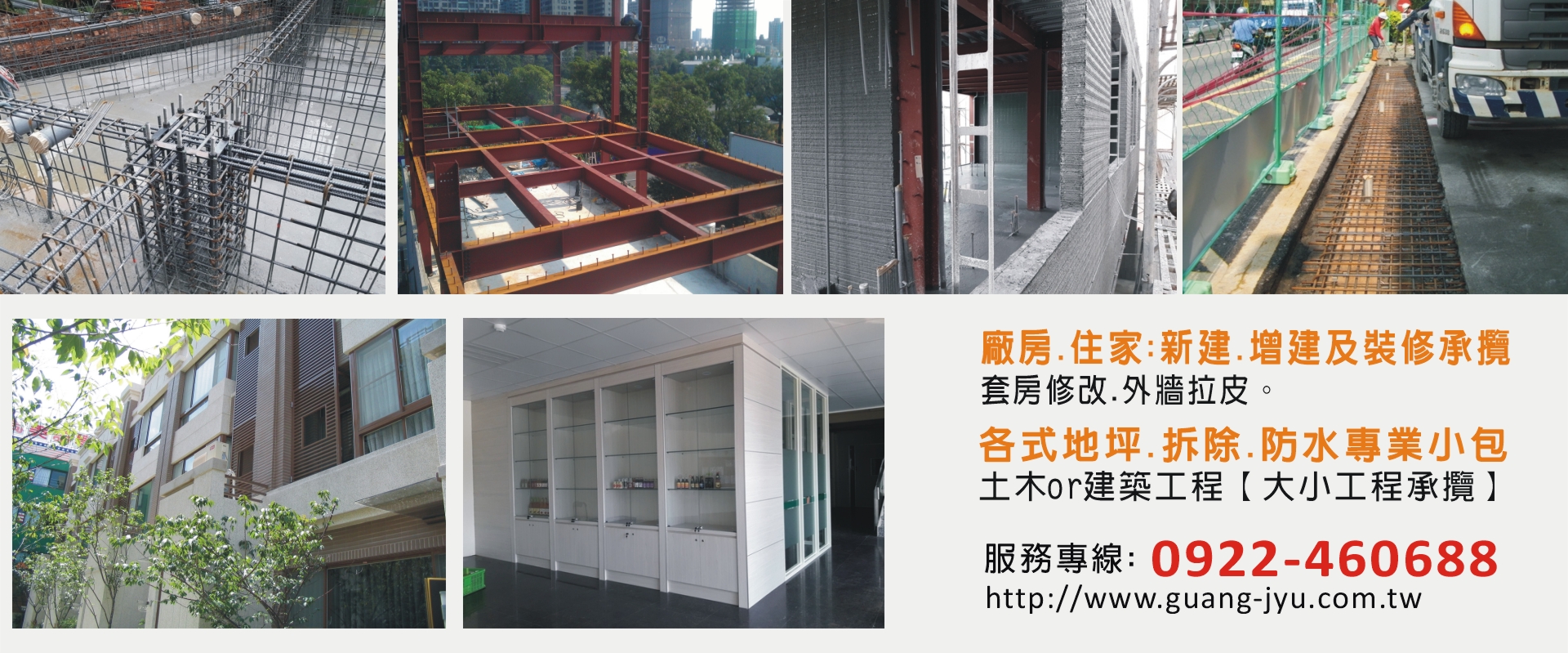 土木包工、舊屋翻新、防水抓漏、外牆拉皮、結構補強、廠房翻新、木工裝潢、土水工程、室內裝修、擋土牆、房屋增建、改建翻修、水電、鐵工、輕鋼架、鋼構、泥作、鐵棟、裝潢拆除、拆除、房屋新建、房屋興建、增建改建、房屋翻修、房屋裝潢、24小時人力派遣、Epoxy地坪、庫板、水溝、AC地坪、建築營造大小工程承攬、耐燃二級輕鋼架、隔音粉體烤漆印花防火級鋼門、止滑面EPOXY、粗面EPOXY、地坪AC鋪設、台中房屋翻修、台中房屋興建、台中土木包工、台中室內裝修、台中舊屋翻新、台中土水工程、台中木工裝潢、台中防水抓漏、台中鐵工、台中人力派遣、台中鋼構、台中裝潢拆除、台外牆拉皮、登記字號:M90227-000